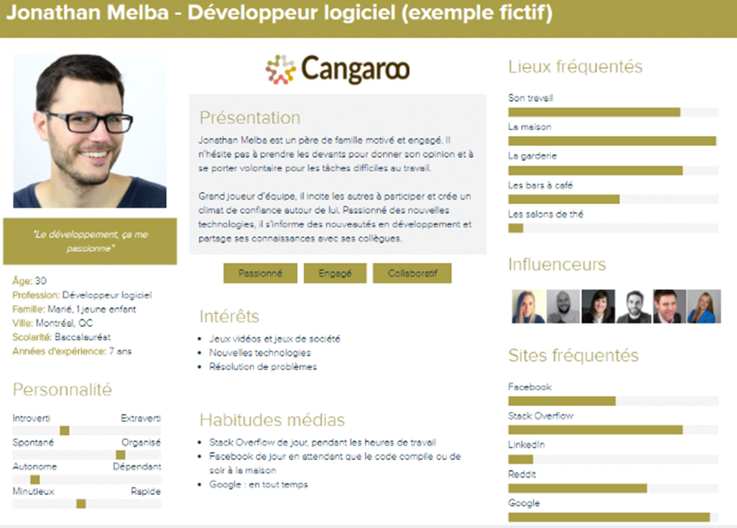 Audit de communication Audit Communication externe Analyse de la cible Exemples de persona «‹ 6 7 8 9› Chapitre Précédent Retour à la/au Leçon Chapitre Suivant