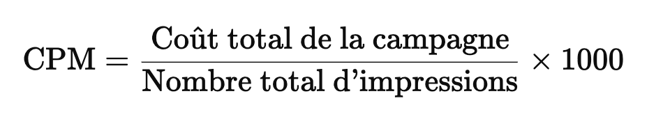 Montant dépensé pour 1 000 affichages d’une annonce.