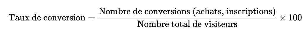 Audit de communication Audit Communication externe Communication online Les différents KPI’S Taux de conversion Taux de conversion : Formule : Utilité : Mesurer l’efficacité du site à transformer les visiteurs en clients ou leads. Bon taux : E-commerce : 2-4 %. Landing pages : 5-10 %. Pages visitées par session Indique combien de pages un utilisateur explore en moyenne. Bon indicateur : Une moyenne de 2-3 pages par session montre un bon engagement. Temps passé sur le site Montre si les utilisateurs trouvent le contenu intéressant. Bon indicateur : 1 à 3 minutes en moyenne (dépend du secteur et du type de contenu). Taux de rebond (bounce rate) Pourcentage de visiteurs quittant le site après avoir vu une seule page. Bon taux : 20-40 % pour un contenu bien optimisé. 60 % peut signaler des problèmes de contenu ou de navigation. . «‹ 14 15 16 17›» Chapitre Précédent Retour à la/au Leçon Chapitre Suivant