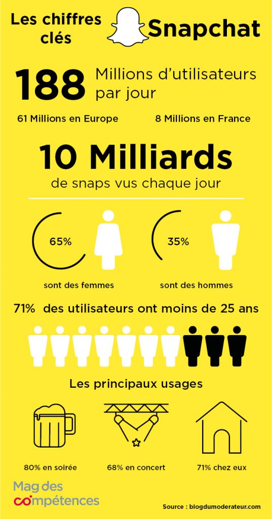 Chaque photographie ou vidéo envoyée ne peut être visible par son destinataire que durant une période de temps allant d’une à dix secondes ou, depuis récemment, avec une limite de durée de 1 min.