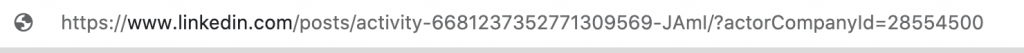 Retournez sur la fenêtre avec le post sur lequel vous voulez interagir en tant que page. Modifiez-y la fin de l’URL en ajoutant /?actorCompanyId= suivi de l’ID de votre page. Cliquez sur Enter.